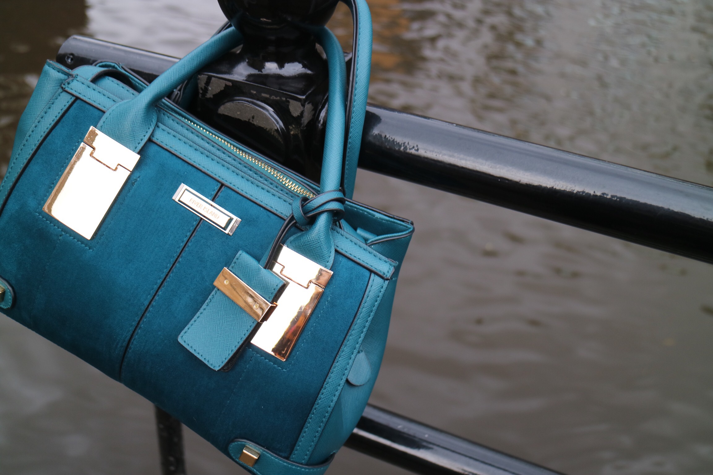 It comes with the slip I’m wearing, as it’s see-through without. I’m wearing the slip back to front here to make it a bit lower and have more Chiffon only at the front. For work I do wear it the right way around fear not (I personally draw the line at bra flashing in the office!) I picked out the teal colour in the print with my bag of the moment from River Island. It’s last years I hate to say but take a look at this Fiorelli one  if this colour is your bag (lols I couldn’t resist).