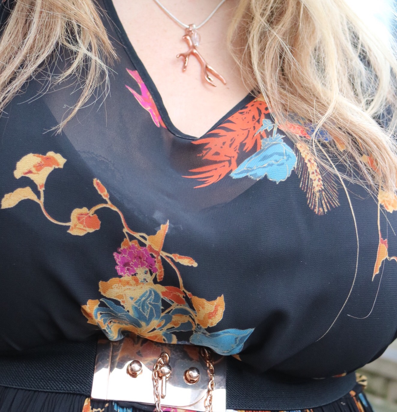 Looking at the print now I do think pulling out the orangey or mustard colours would also look great! It’s not available anymore (sorrrry) but this one has a similar vibe to it I feel! I’m also loving this one from Boohoo Plus too, if you prefer a lower cut, shorter style. It’s still chiffony though so the ironing factor should still be reduced and you can’t not agree that that’s a benefit right!?