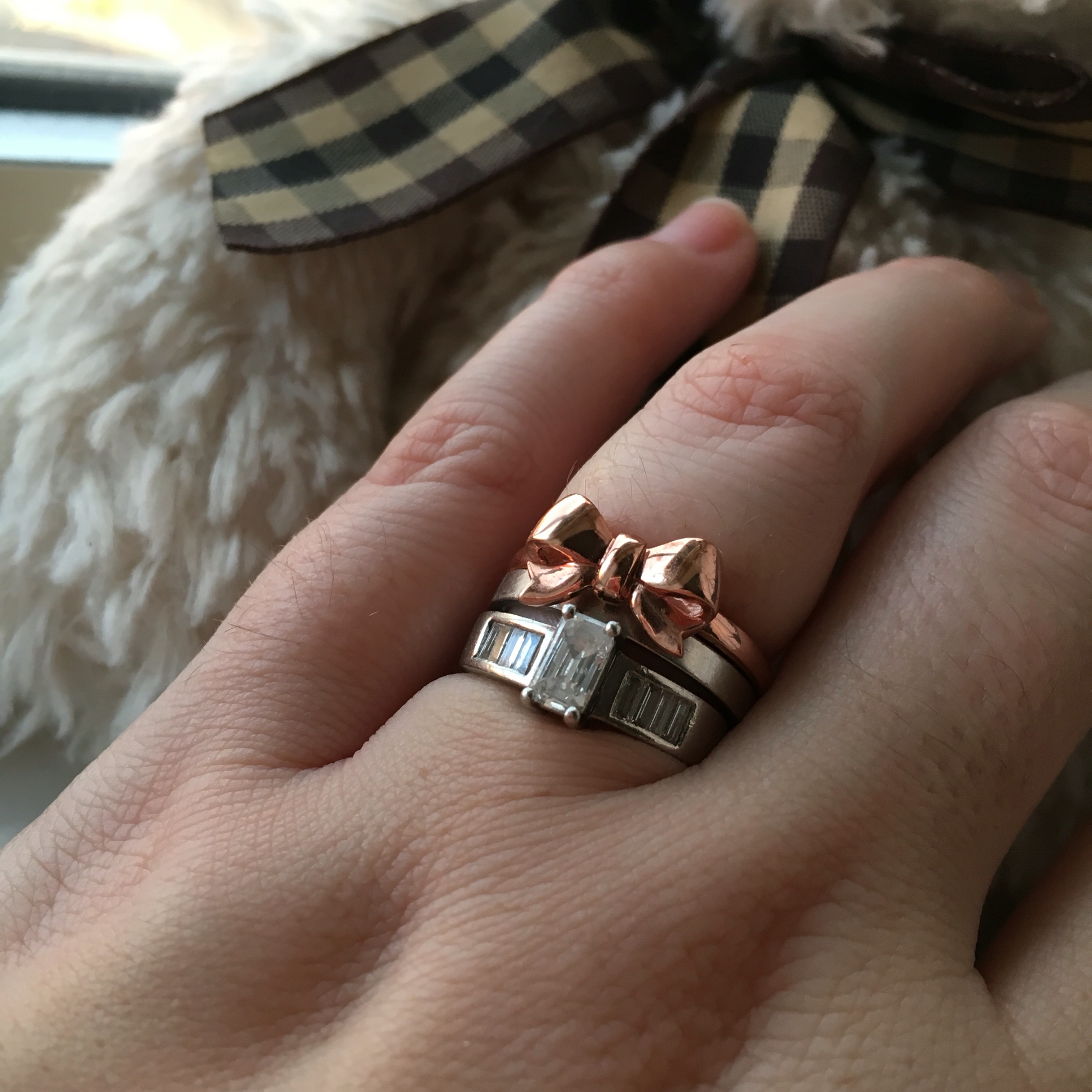 There’s one thing with Thomas Sabo rings though and it’s the sizing, I would recommend sizing up there’s a great guide to all ring sizes on the Joshua James Jewllery Blog which I found so helpful, and is one of the reasons I would buy Jewllery from them on the future, their blog posts are really useful and helpful and you just don’t get that with a mainstream jeweller I don’t find. Anyway I got a size 56 which is the equivalent to a P1/2 in our UK sizing. My wedding ring is a size N, and just fits so I thought the sizing would be plenty to wear it on my middle finger. However it only just fits on my right hand ring finger and I find it fits more comfy on my left hand ring finger (thanks to over 5 years of worn away finger there!) and fits across my wedding band and drapes down across my engagement ring. I actually love it like that! It is only a size bigger than my wedding ring (so an O1/2 at a push I would say) so I would recommend going a size up if you are unsure on those rings. I’m considering buying a silver ring next as I love some of the other designs they have on the site too. Let me know what you think in the comments!