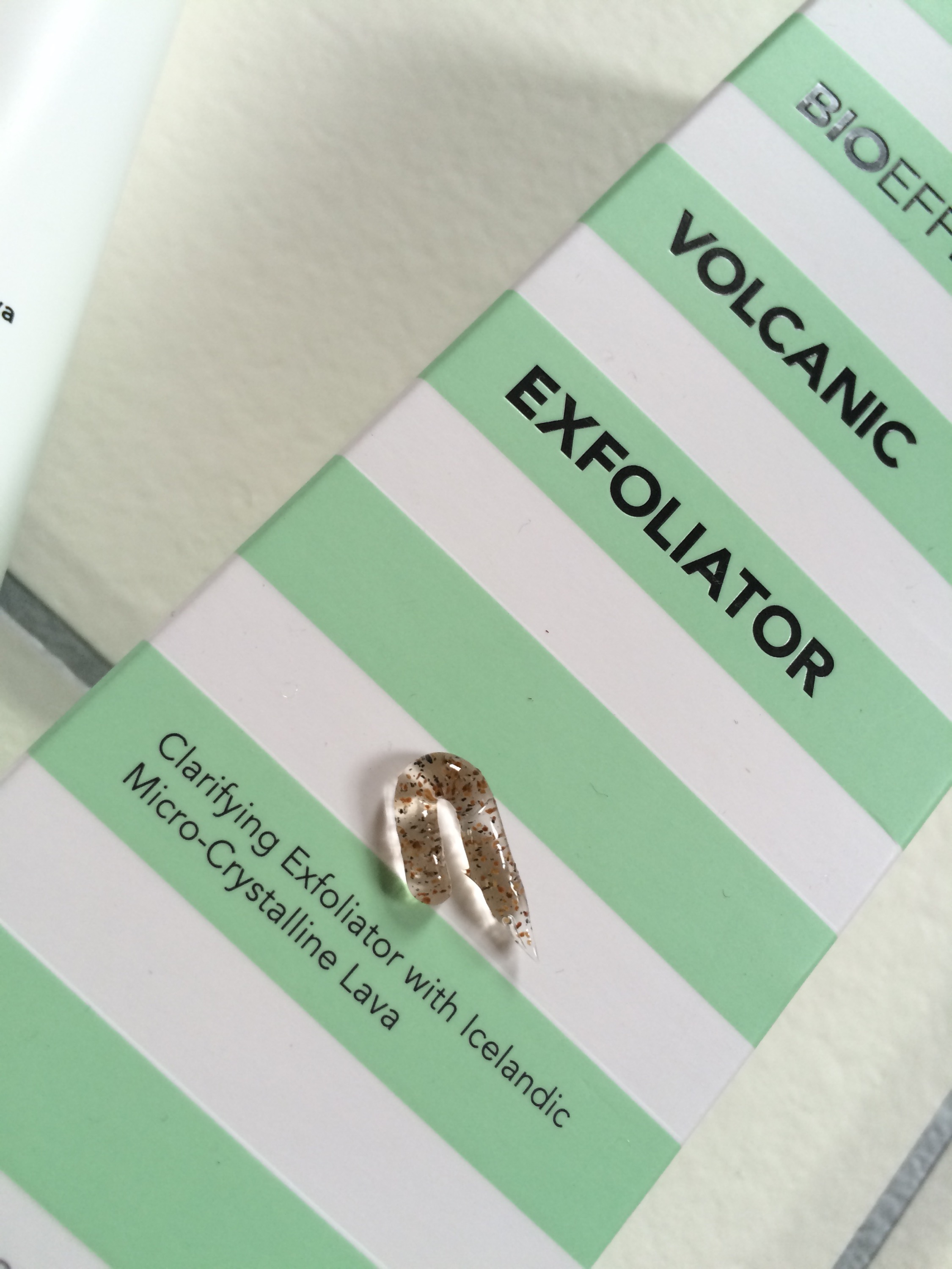 Next up was my second fave the BIOEFFECT Volcanic Exfoliator*. BIOEFFECT are mostly known for their EGF serum which is costly but I know people rave about it! This is designed for use before the serum to remove dead skin cells and deep cleanse the skin leaving it ‘soft and refreshed’. I love the look of the Exfoliator, as you can see it’s a clear gel like consistency with micro Exfoliator particles. This is the Icelandic micro-crystalline lava which comes from an ancient lava field – hence the volcanic name.it also has apricot kernels in it and contains salicylic acid to aid with the exfoliation. Overall it did what it said on the box, it exfoliated my skin well and left it feeling soft and not dryed out. It wasn’t too rough and the particles were a good size to do the job without feeling too coarse.
