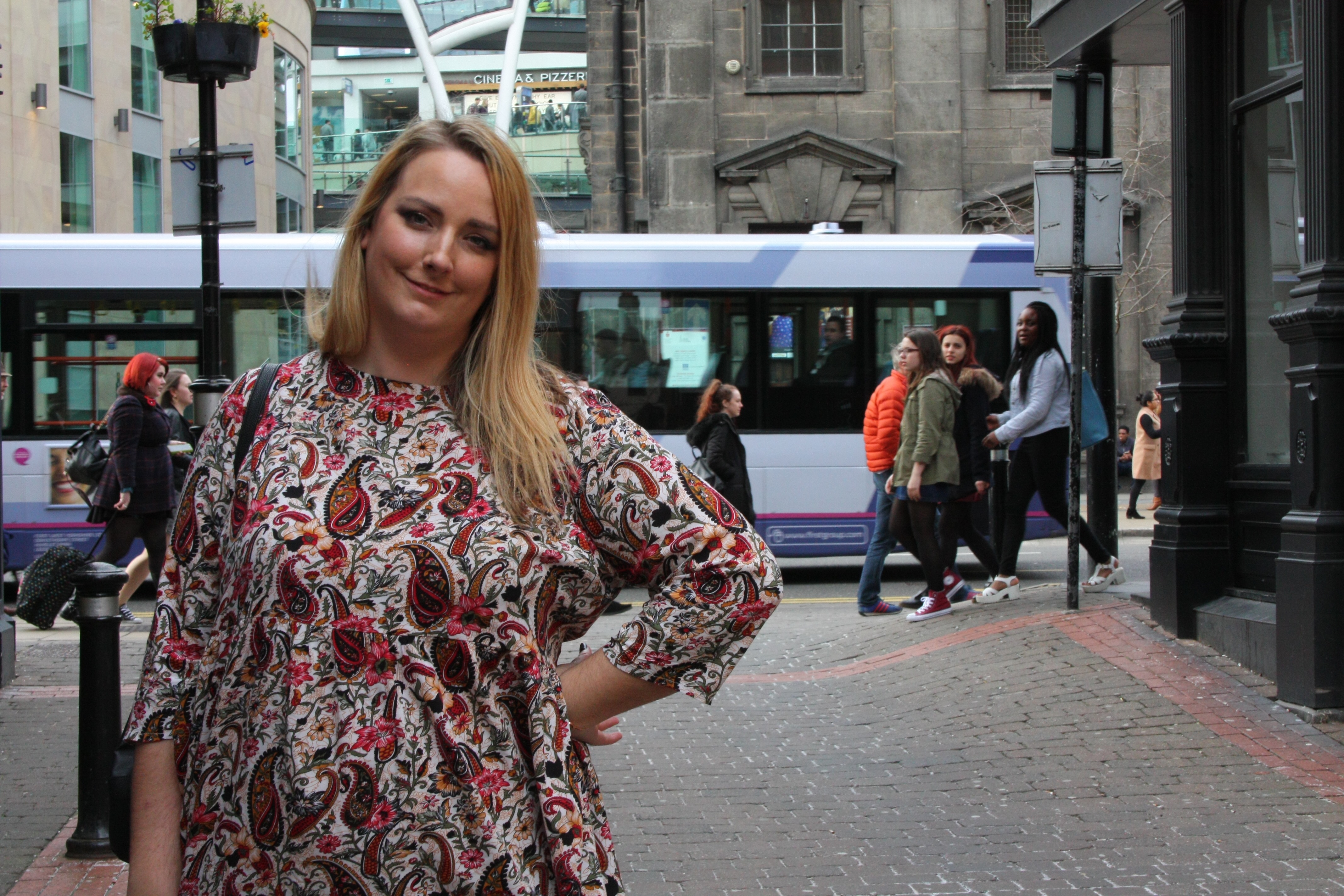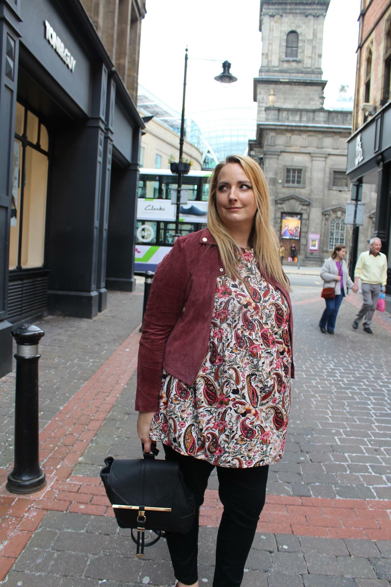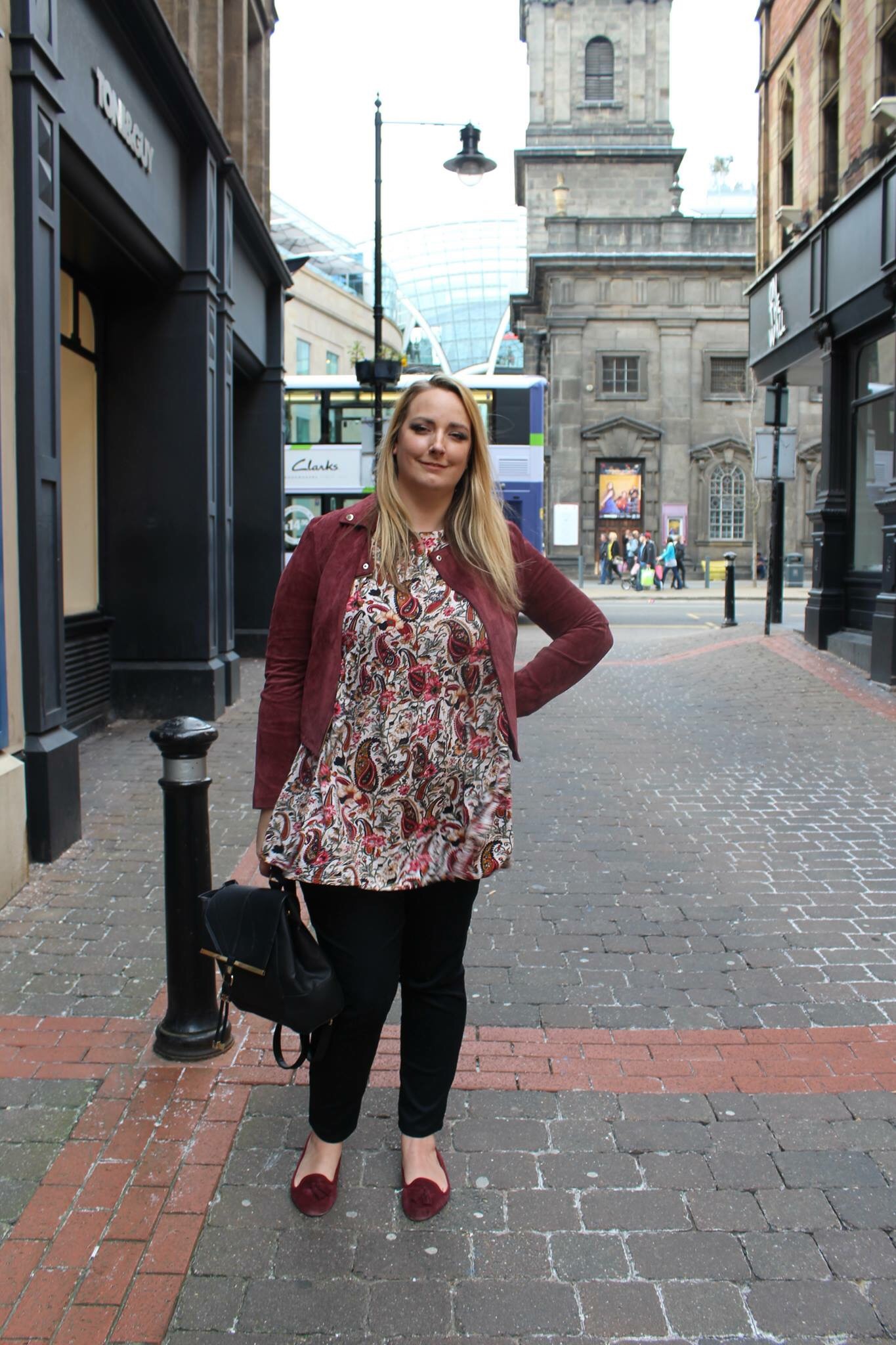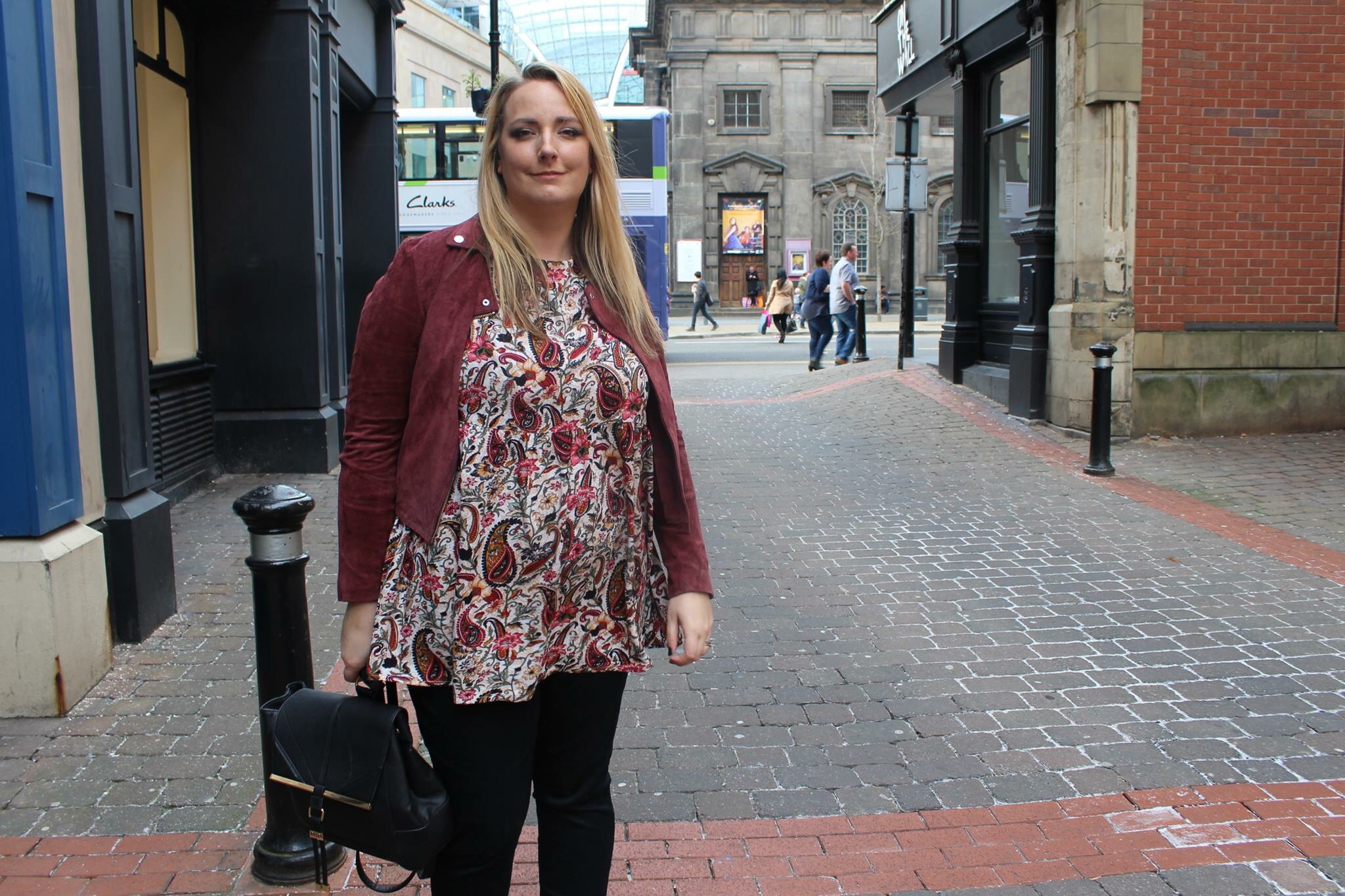 It was after we had wound up myself and Bee went to take some outfit shots. We attempted to find somewhere quiet, yes in central Leeds on a Saturday. So we finally settled here in one of my favourite hidden squares in Leeds between Trinity and the arches.
