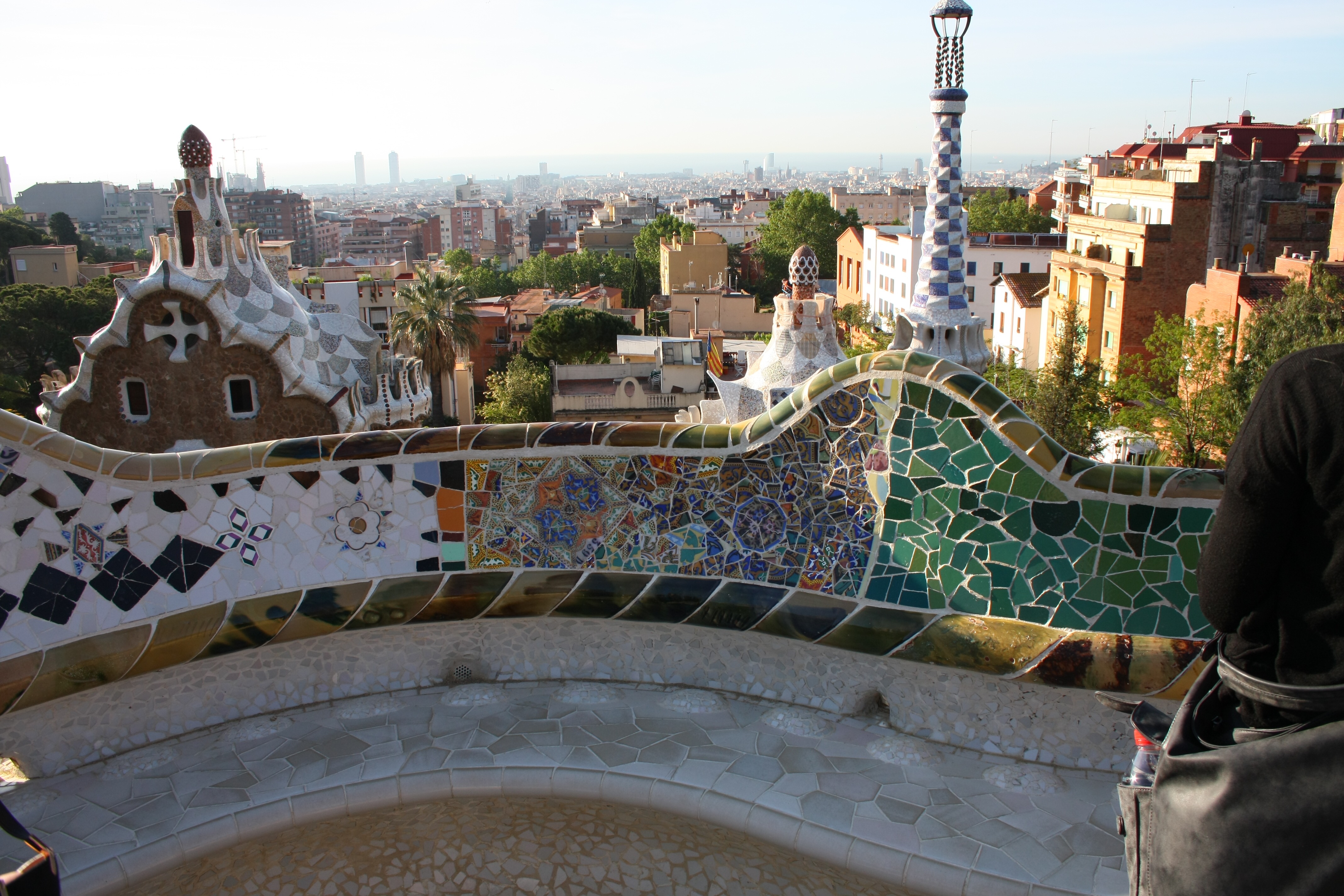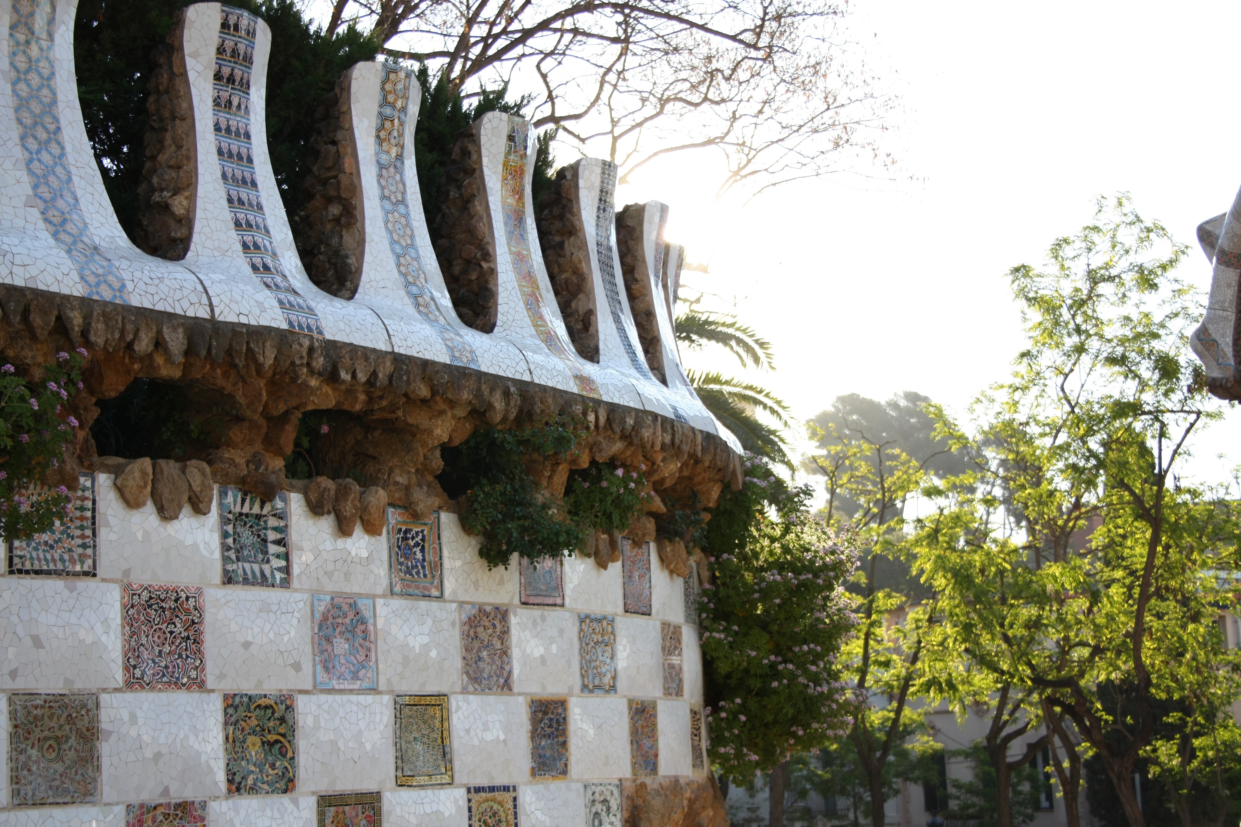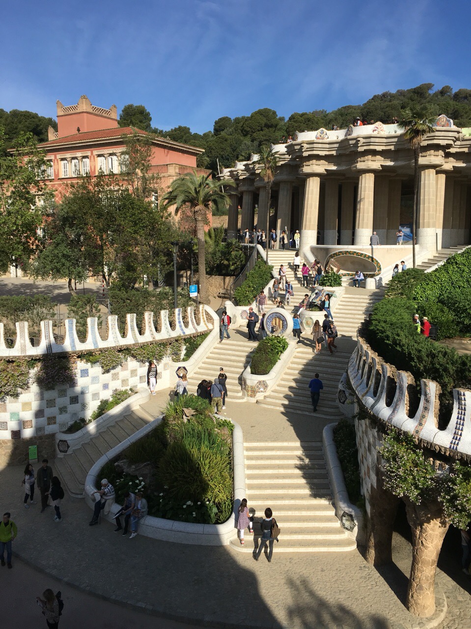 Park Güell was originally planned to be a posh housing estate, think Beverly Hills meets Barrat homes if you will haha! However it’s poor transport links made it a pretty poor choice for the rich of Barcelona to want to live there. So only a couple of show homes were built (Gaudí then moved into one). Luckily they had also built the 2 gatehouses the beautiful walls and the amazing staircase that leads to the covered square and above that the beautiful mosaic benches.